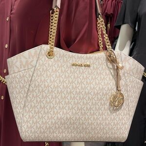 MICHAEL KORS Jet Set Travel Large Signature Chain Shoulder Tote Bag Rose Gold