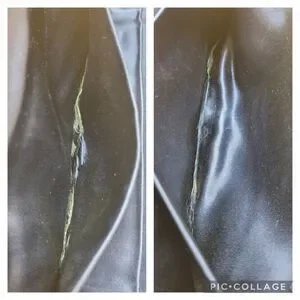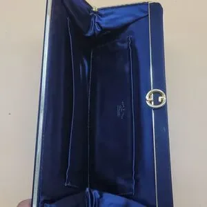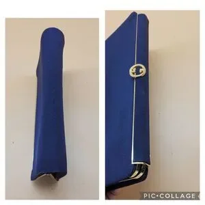 The outer canvas showed sign of used with few spots & minor worn on all corners (6th, 7th, 8th photos). The hardwares are faded. There are 2 small pockets inside bag & have some stains on them (9th photo). Color: navy blue No serial numbers found. It made in Italy. Dimensions ( approx)10.5, 5, & 1". No trade.
