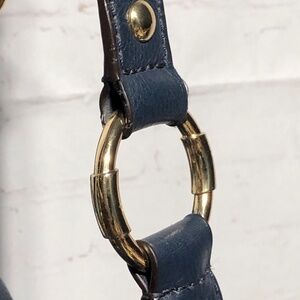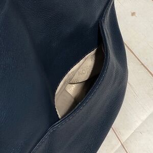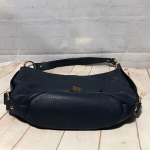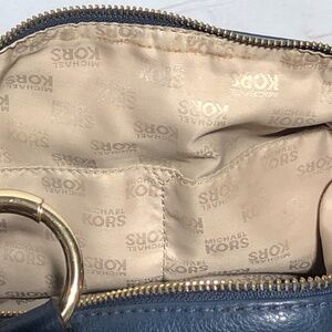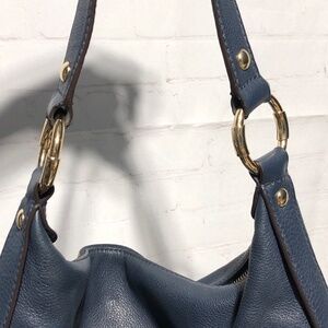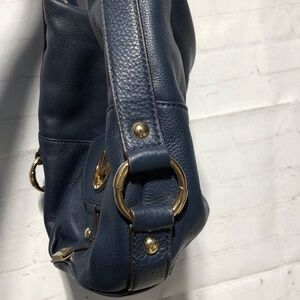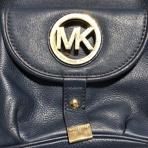 Michael Kors Navy Blue Leather Fulton Pocket Slouch Hobo gold accents MK emblem. Please see pictures for more detail.
