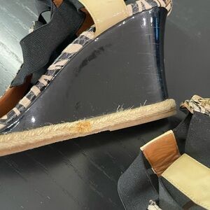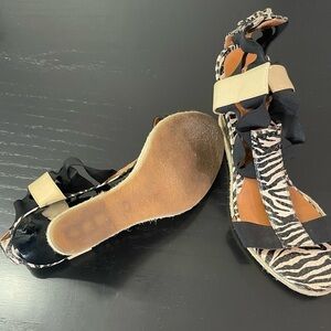 Fendi Carioca Zebra Printed Leather Wedge Sandals