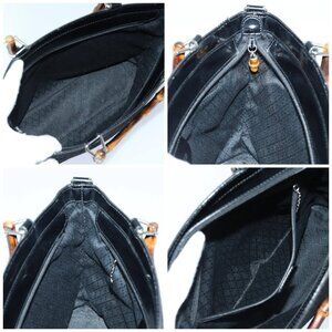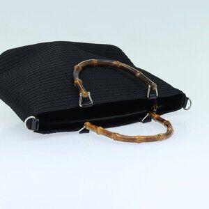 GUCCI Bamboo Hand Bag Canvas 2way Black Gold