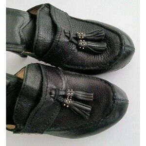 Michael Kors Blk Pebbled Leather Wood Heeled Clog Tassel Trim Sz 8