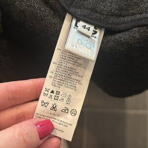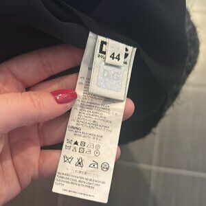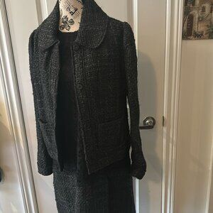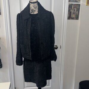 Good preowned condition. Beautiful structured wool dark gray jacked with fitted dress set black lace dress with wool bottom. Sleeveless dress. Made in Hungary. Size 44, equivalent to a size L.. both pieces can be purchased together or separately  180$/item.