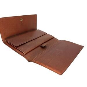 This Louis Vuitton LV monogram Canvas Sarah Wallet is the most elegant way to organize your essentials like your bills, currency, credit cards and plenty of coins 6 credit card slots. This delightful piece will always be a popular and timeless classic. The exterior canvas is clean, but has wear, rubbing, and slight cracking to the corners and edges. The elegant gold-tone hardware includes some light hairline surface scratches. There is some slight curling to the edges of the card slots under the flap. The interior is clean and in good condition with creases, light wear, stretching to the card slots, and a light perfume scent.