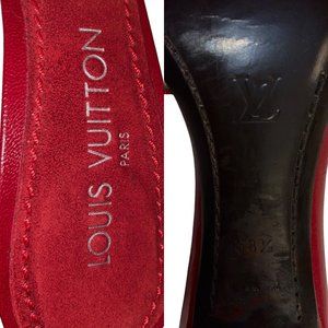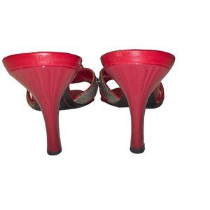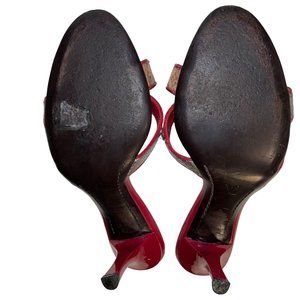 Preowned: In good preowned condition. Shows light signs of prior use and wear. Interior authenticity stamp (BR1003) inside each shoe. Imperfections and flaws include imperfect replaced rhinestone on right shoe (upper strap area). Please see last photo for details. These amazing shoes show preowned use with minor nicks and scratches. Wear on bottom soles. Small 2mm nick on right leather edge above heel. Please carefully view photos. Feel free to ask questions.