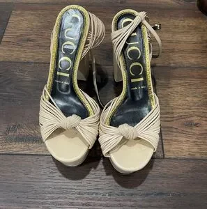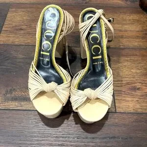 Solid and beautiful pre owned pair of authentic Gucci platform sandals in size 38.5