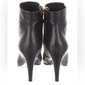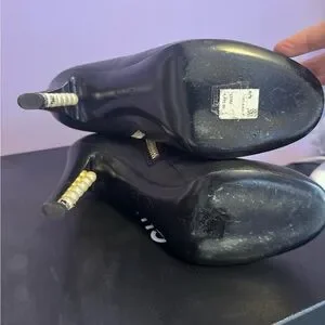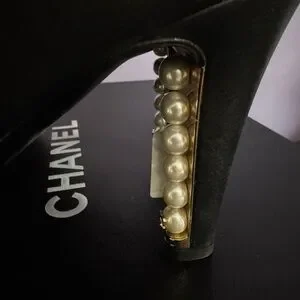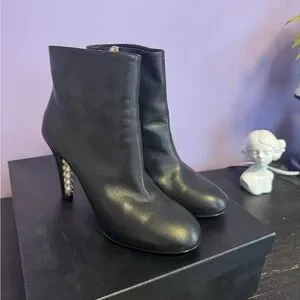 Authentic Chanel black leather ankle faux pearls boots