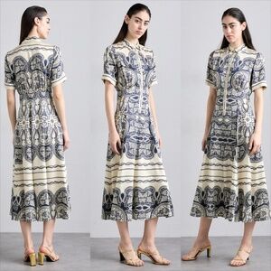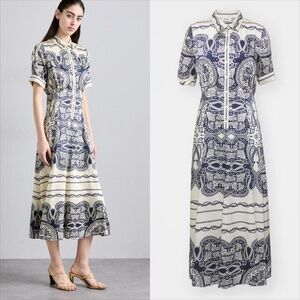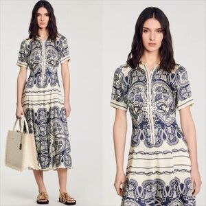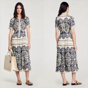 Sandro patterned paisley scarf print Marine beige midi dress NO OFFERS
