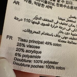 - 49% cotton, 25% viscose, 20% acrylic, 6% polyamide