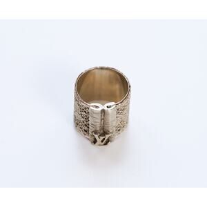 Louis Vuitton "Bijoux Fantaisie" Vintage Gold Tone LV Logo Mesh Wide Ring