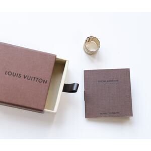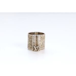 Louis Vuitton "Bijoux Fantaisie" Gold Tone LV Logo Mesh Wide Ring