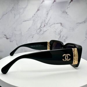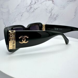 New CHANEL Sunglasses Polarized Black Gold Metal Interlocking CC Logo - 100% Authentic!