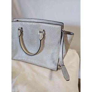 Michael Kors Silver Textured Leather Tote Adjustable Strap Handbag READ