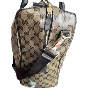 GUCCI Brown Leather &Crystal GG Logo Travel Bag #2258