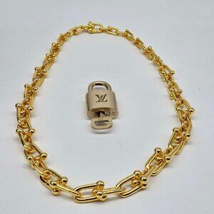 NOTE: The lock and key is 100% authentic Louis Vuitton, but the Chain is not from Louis Vuitton and it is a fashion gold plated metal. You can use the lock and key for locking, pendant, or any decoration.