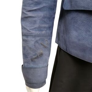 BURBERRY BRIT Womens Blue Denim 100% Calf Leather Suede Jacket Blazer 2 Small