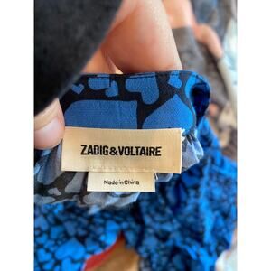 Zadig & Voltaire Tink Heart Print Long Sleeve Popover Blouse XS