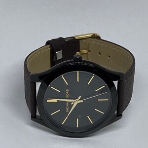 Michael Kors Slim Runway MK3221 Women's Brown Leather Analog Dial Watch JK594 Description Michael Kors Slim Runway MK3221 Women's Brown Leather Analog Dial Watch, 42 mm case diameter with stylish look. A classy watch is all you need to make any attire look more attractive. This Michael Kors timeless creation looks appealing. These genuine timepieces are definitely watches to keep your eyes on, this very eye-catching and modern watch is the perfect accessory option for every day wear. Product Detail • Band Material: Stainless Steel • Case Size: 42 mm • Dial Color: Black • Functions: Hour, Minute, Second Please message me if you have any questions. I stand by all of my items before and after purchase. Please see my feedback. We do not combine shipping unless it’s at least 7 orders to combine. If you ask us to cancel an auction all the auctions won will be cancelled by that buyer. Thank you.