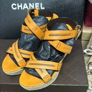 Burberry Women's Leather Espadrilles Wedge Sandals