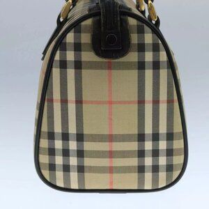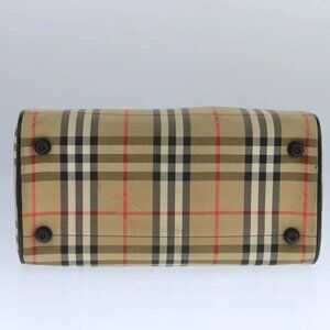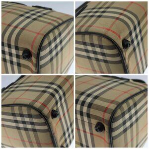 Burberrys Nova Check Black Label Boston Bag Canvas Beige Gold Auth yk16645