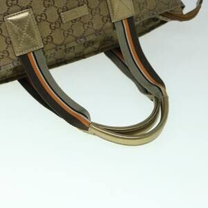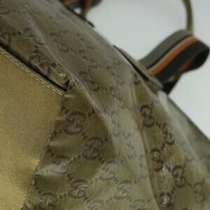 GUCCI GG Crystal Sherry Line Tote Bag Gold Tone Brown Gray