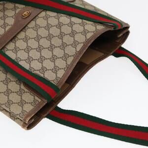GUCCI GG Supreme Web Sherry Line Tote Bag Pvc Beige 001 080 494