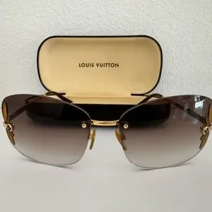 Elevate your style with these chic vintage Louis Vuitton sunglasses. Featuring a sophisticated brown hue, they offer both elegance and UV protection. Perfect for any occasion. Gently used.