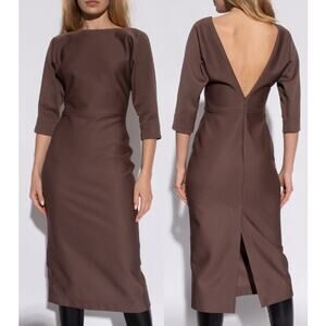 Fendi Roma 3/4 Sleeve Round Neck Midi Sheath Dress Tobacco Women's Size US 4