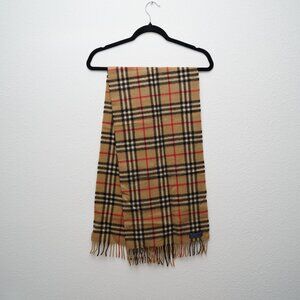 Authentic Burberry Classic Check Pattern Cashmere Scarf Fringe at the Ends