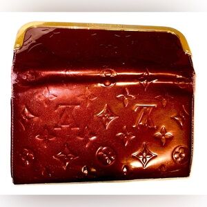Louis Vuitton Wallet LV Wallet Portefeuille Rossmore Rouge Fauviste Burgundy/Wine/Bordeaux/Merlot Monogram Vernis Sarah Wallet Clutch Wallet on Chain WOC with Gold Luggage Trunk Style Trim Patent Leather
