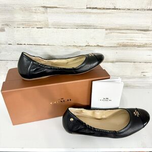 COACH Shoes Women Size 6.5 Black Patent Leather Ballet Flats W/ Box Low Arch