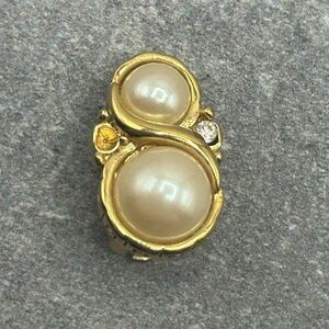 Givenchy Gold Plated Pearl Embellished Clip On Earrings With Rhinestones
