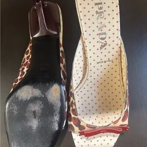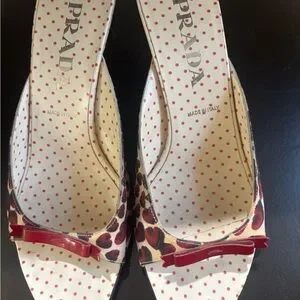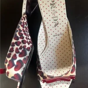 Vintage Prada Women's Red and Brown heart Print Shoes
