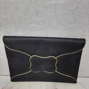 Vintage Yves Saint Laurent Silk Envelope Clutch 9" Black Gold Trim France