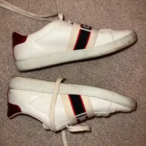 Gucci White Sneakers with Red and Black Accents