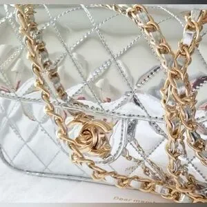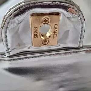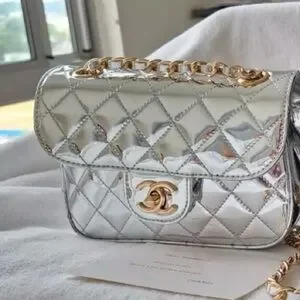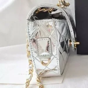 Elevate your style with this elegant Chanel mirror silver quilted bag. Perfect for any occasion, this bag combines luxury and functionality.