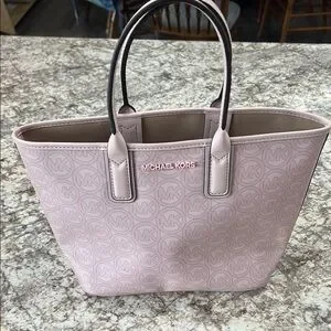 The Michael Kors Jodie Small Jacquard Logo Recycled Polyester Tote Handbag is a stylish handbag designed for modern women. It is made from recycled polyester with smooth leather trim and measures 29.21 cm W x 20.32 cm H x 12.06 cm D. The canvas fabric lining adds a touch of luxury, while the lightweight design ensures comfort.