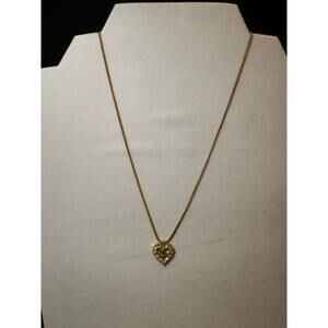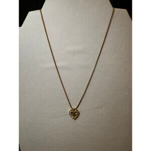 Christian Dior Heart Rhinestone Necklace Gold Plated*Beautiful w/Velvet Gift Box