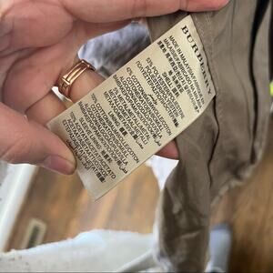 Taupe tan - colors may appear different on different screens. Authentic burberry Brit. Size US 6. Silver tone hardware. Poly cotton blend. Not rain proof or wind proof. But cute for those chilly fall days! Preowned.