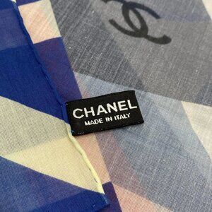 CHANEL Blue Red Multi Cotton Scarf 327-042525