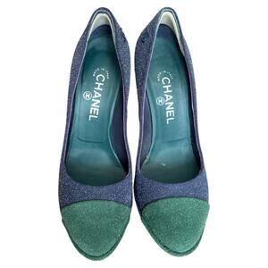 CHANEL Purple/Green Interlocking CC Logo Pumps, US8.5/IT38.5 SRP: $1495