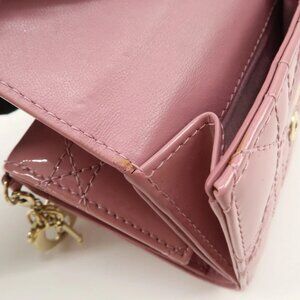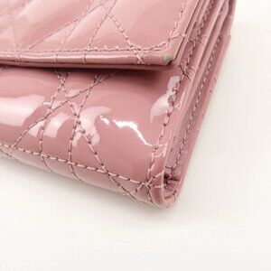 🩶Authentic Christian Dior Lady Dior Canage Patent Leather Tri-fold Wallet Pink