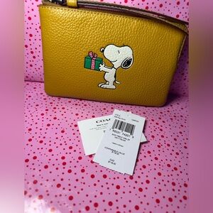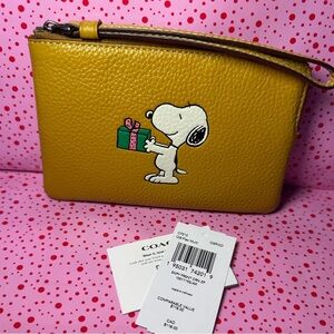 Coach Snoopy Present Leather Corner Zip Wristlet NWT