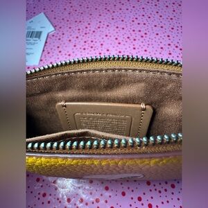 Leather corner zip wristlet from Coach featuring Snoopy.