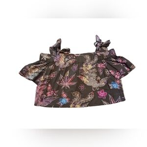 Sandro Exotic CRANE Foliage Floral Crop Top Birds Leaf Maximalist Whimsigoth