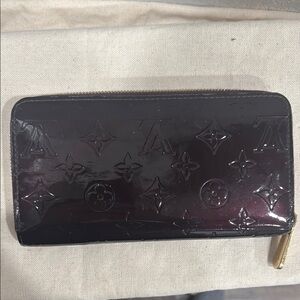 Elegant Louis Vuitton wallet. Features monogram Vernis design. Sleek and stylish.