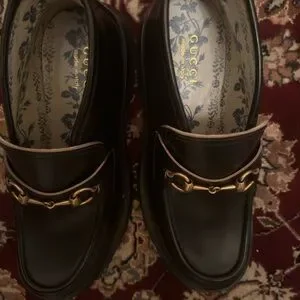 Stylish Gucci Horsebit Authentic black ankle combat leather boots featuring a gold buckle and bee detail on back. Perfect for any occasion. Boots are in excellent condition (only worn 2-3 times).
