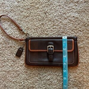 Coach Authentic Vintage Mini Brown Leather Wristlet With Buckle Front