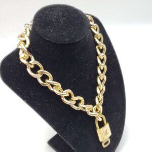 Authentic Louis Vuitton Lock and Key Gold Color with Gold Plated Chain Necklace
