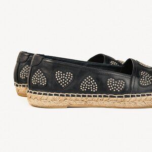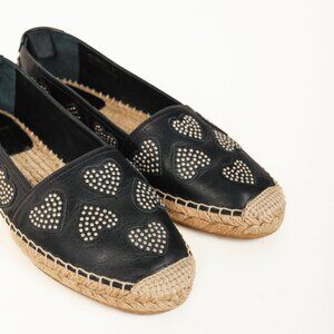 Saint Laurent Nero Leather Studded Heart Espadrilles